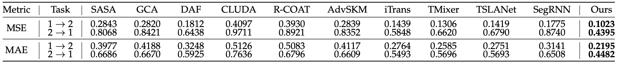 在技术上,我们构建了一个基于变分推断的统一学习框架,对时间序列的潜在动态过程进行建模,该框架通过编码器–解码器结构将高维观测映射到潜在空间。在此基础上,我们实现了潜在变量的可识别性,并借助跨域因果不变机制,实现对域不变因果结构的有效建模。大量的实验研究表明,我们的LCA模型在九个真实数据集上优于最先进的时间序列域自适应方法。